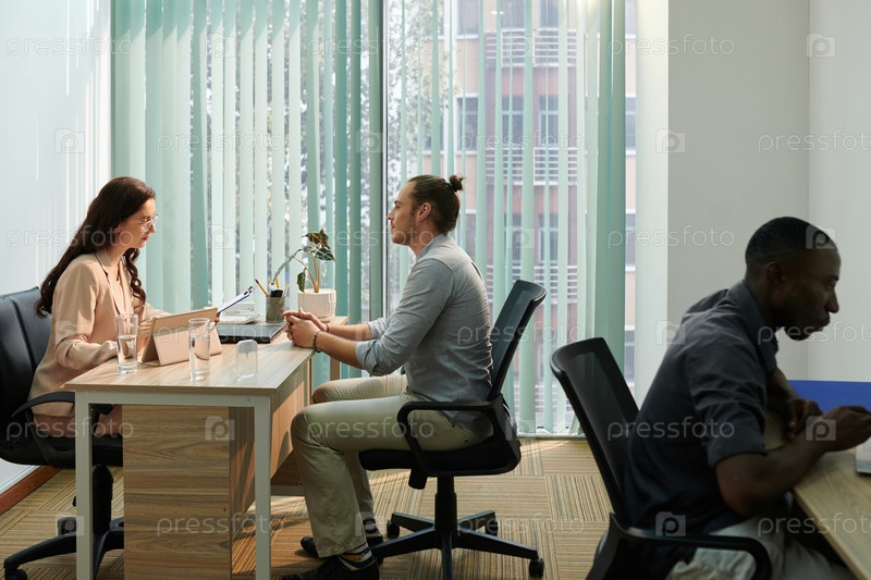 Менеджер по персоналу читает резюме соискателя
