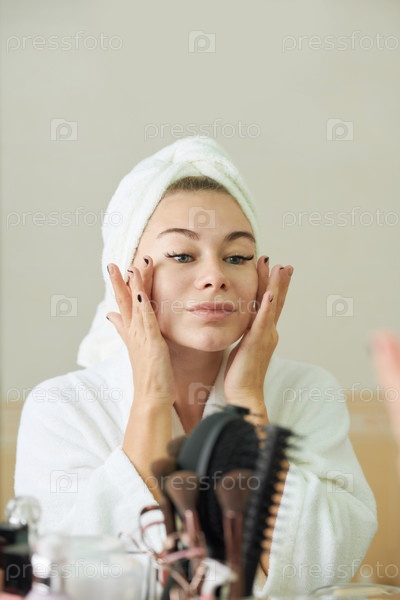 Женщина, применяющая продукты по уходу за кожей