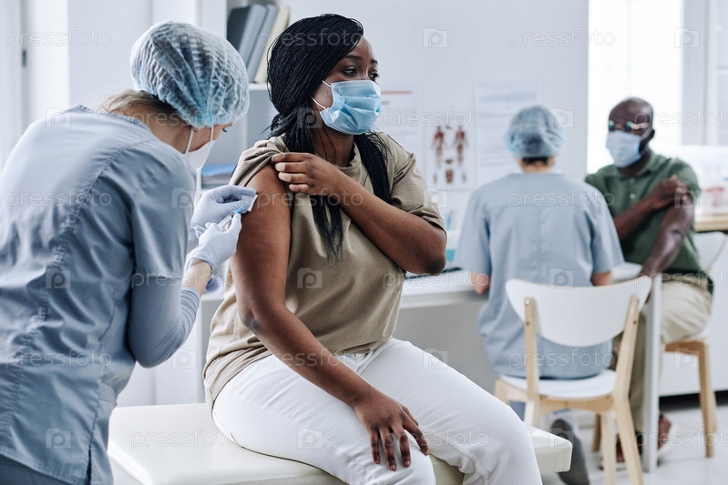 Женщина, получающая прививки в больнице