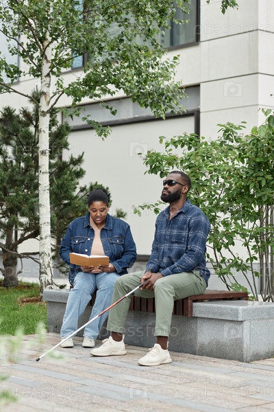 Женщина, читающая книгу слепому партнеру