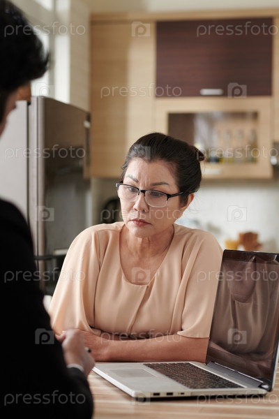 Женщина, слушающая страхового агента