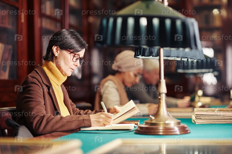 Взрослая женщина в классической библиотеке