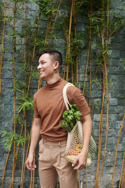 Молодой человек покупает местные товары