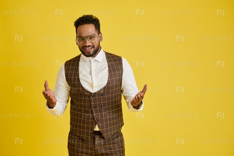Позитивный мужчина приветствует слушателей