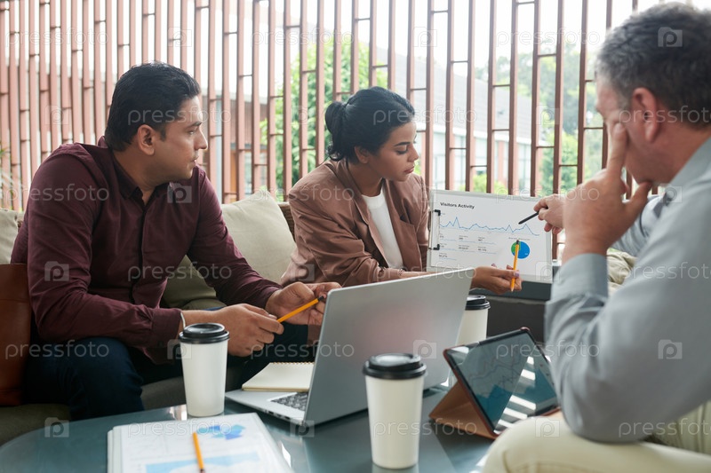 Деловая женщина показывает график на встрече