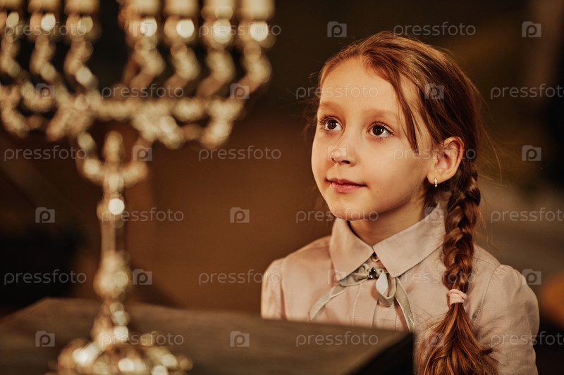 Девушка, глядящая на свечу менора на Хануке