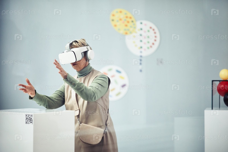 Старшая женщина, использующая гарнитуру VR