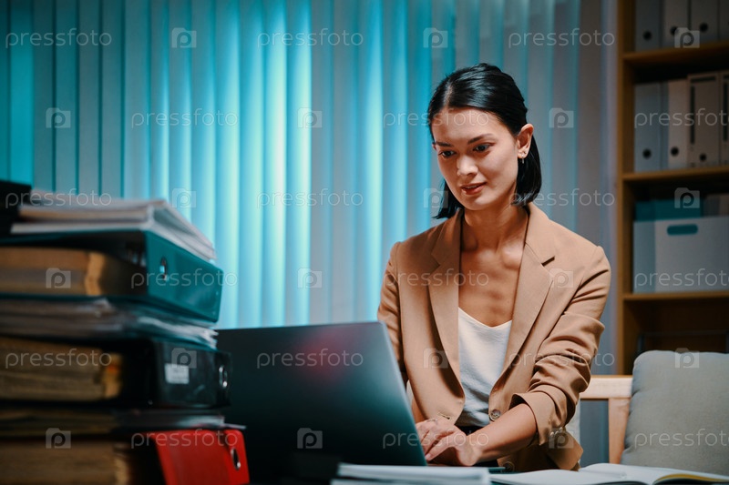 Деловая женщина, работающая поздно ночью