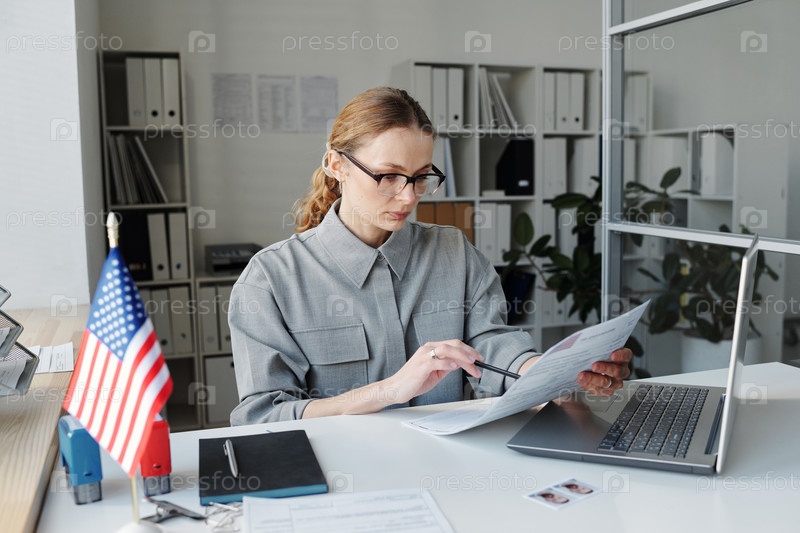 Женщина, работающая с визовыми заявлениями