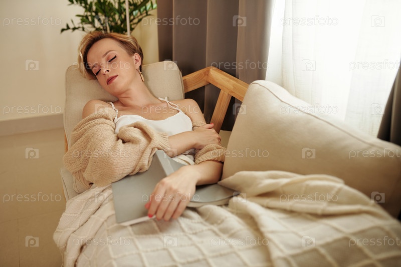 Женщина отдыхает на диване дома