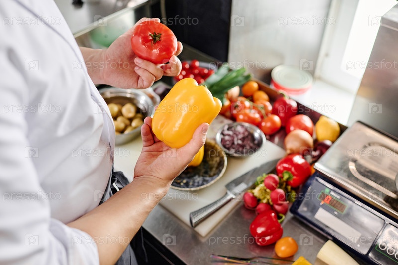 Шеф-повар выбирает овощи для салата