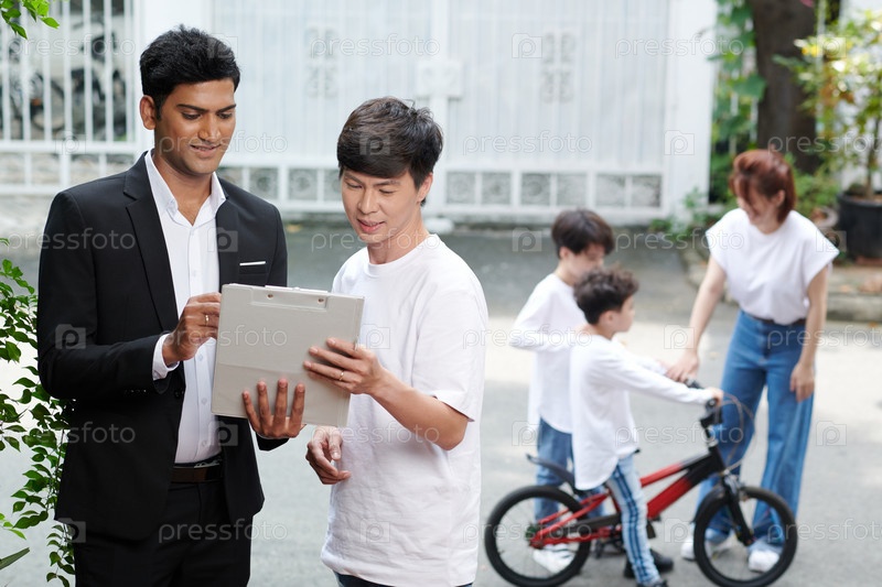 Мужчина разговаривает с страховым агентом