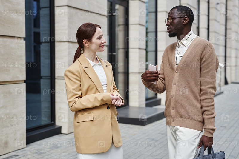 Молодой уверенный в себе афроамериканский менеджер объясняет что-то коллеге