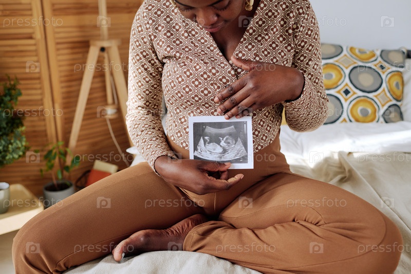Беременная девушка с 3D-сканированием своего ребенка