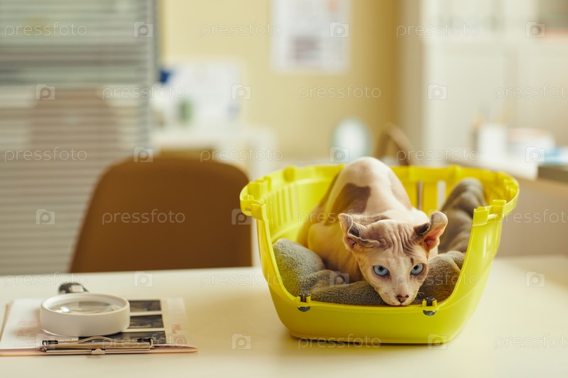 Бесволосая кошка в ветеринарной клинике