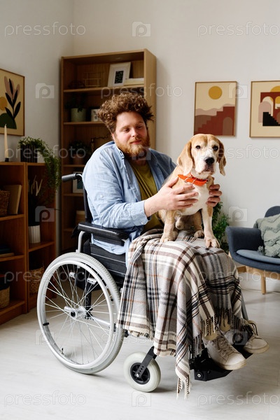 Человек с инвалидностью проводит время со служебным питомцем