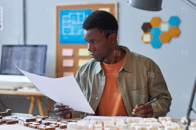 Юнг-архитектор изучает план в офисе