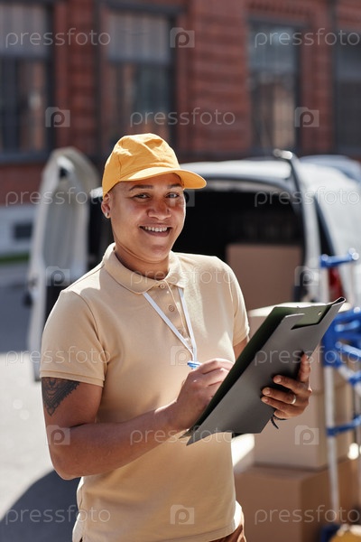 Улыбающийся работник доставки