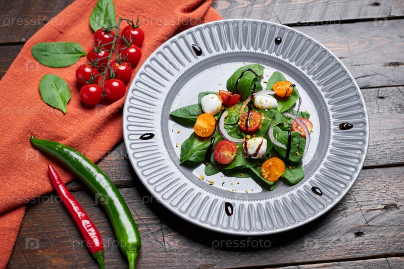 Овощный салат с соусом на тарелке
