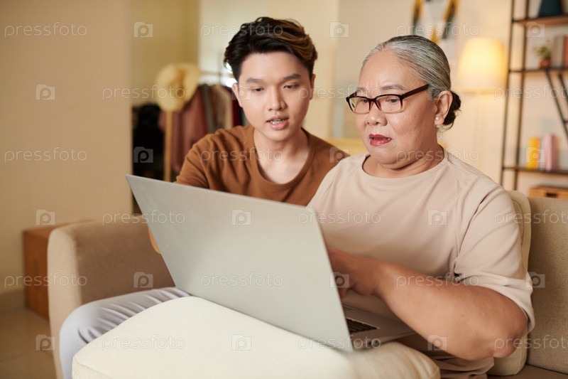 Старшая женщина обучается вычислительным технологиям