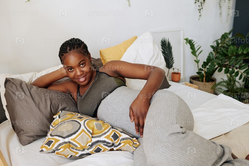 Беременная женщина отдыхает в своей кровати