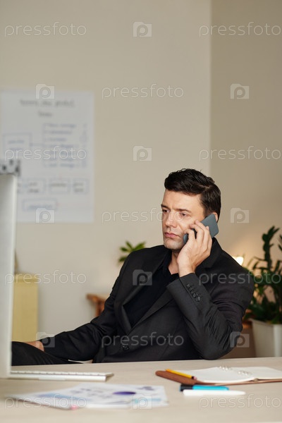 Бизнесмен звонит по телефону коллеге
