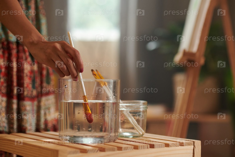 Художник кладет кисть в воду
