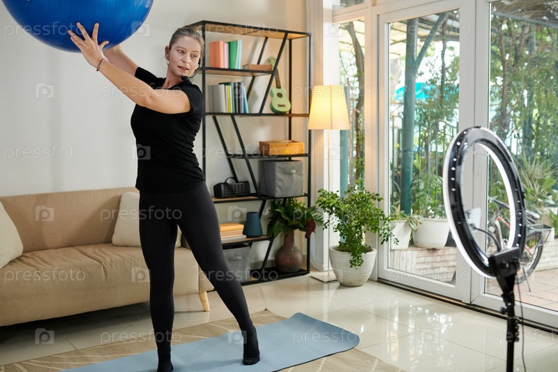 Тренер снимает себя, делая упражнения