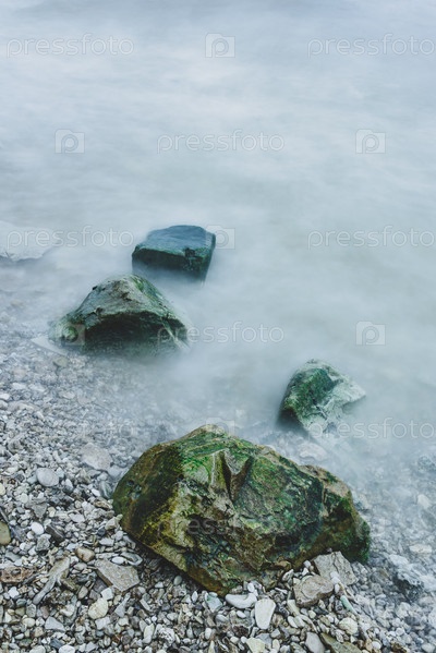 Ряд валунов в пене волн