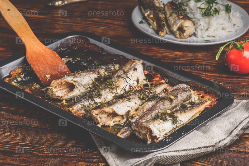 Запеченные рыбные тушки на противне
