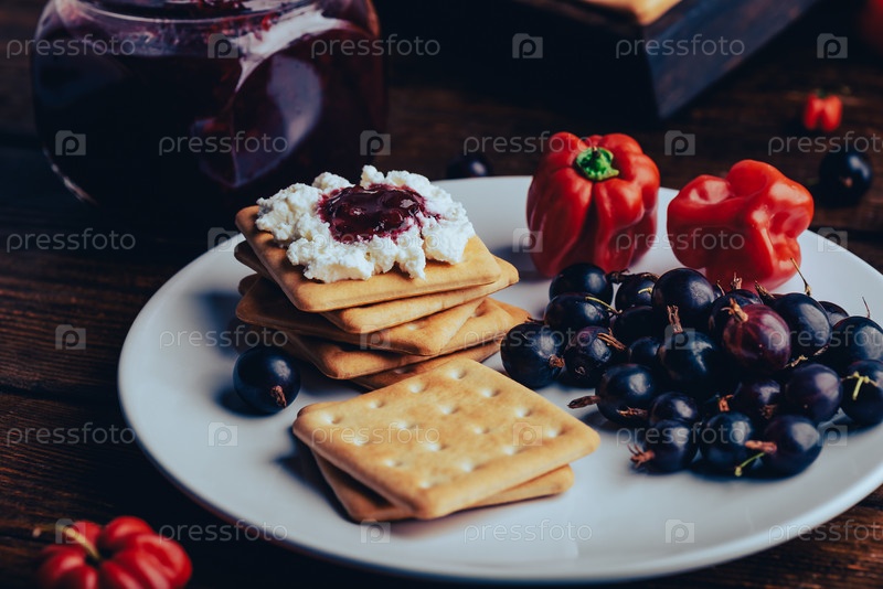 Крекеры с ягодами, вареньем Хабанеро и рикоттой