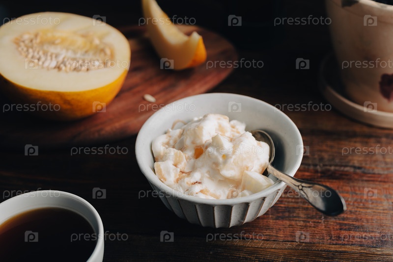Винтажная тарелка мороженого, смешанного с дыней