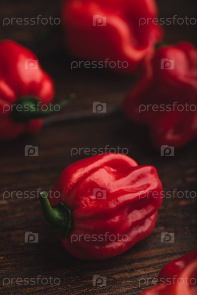 Красный перец Хабанеро на деревянном столе