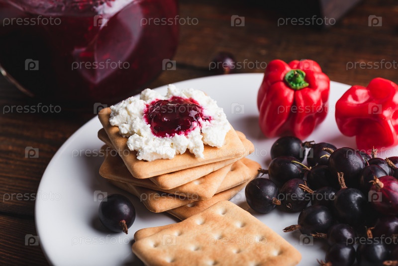 Варенье из крыжовника и перца Хабанеро со сливочным сыром на крекерах