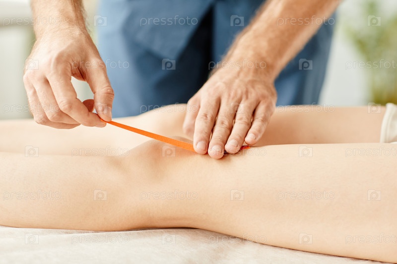 Физическая лента на колене Closeup