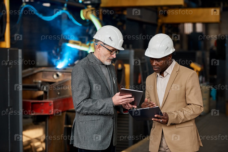 Инженеры контролируют работу на заводе