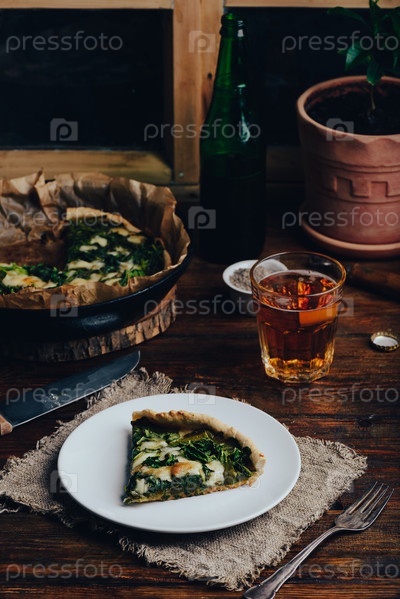 Кусочек шпинатного пирога с сыром пармезан и чесноком