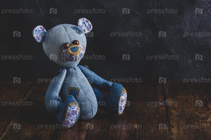 Синяя игрушка-мишка ручной работы