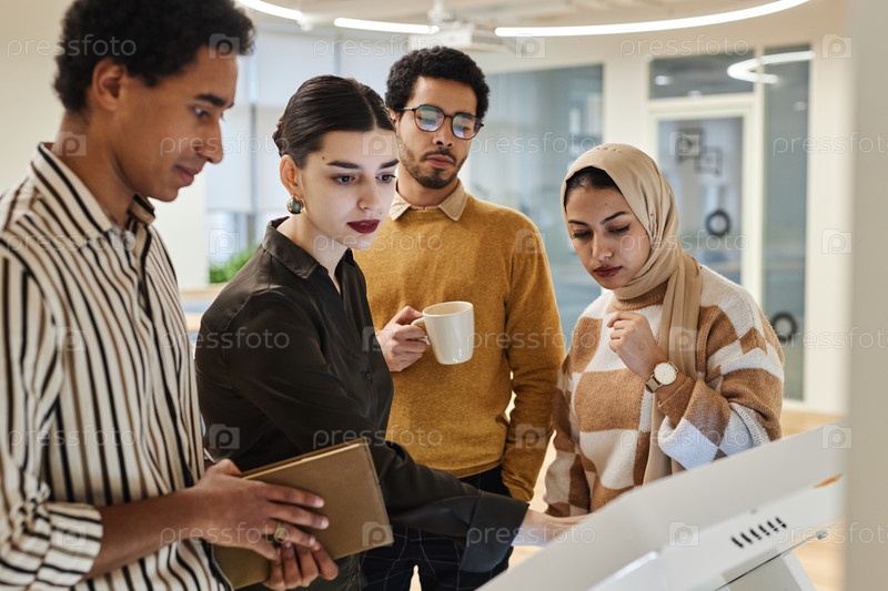 Группа молодых ближневосточных профессионалов, изучающих компьютер в офисе