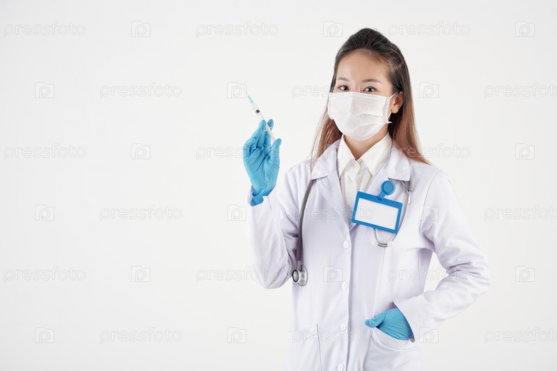 Женщина-врач, держащая шприц