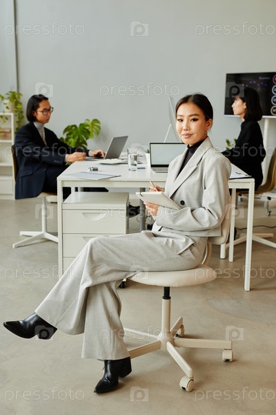 Портрет молодой азиатской деловой женщины Полная длина