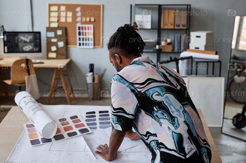 Архитектор, работающий над чертежами этажей Мужчина
