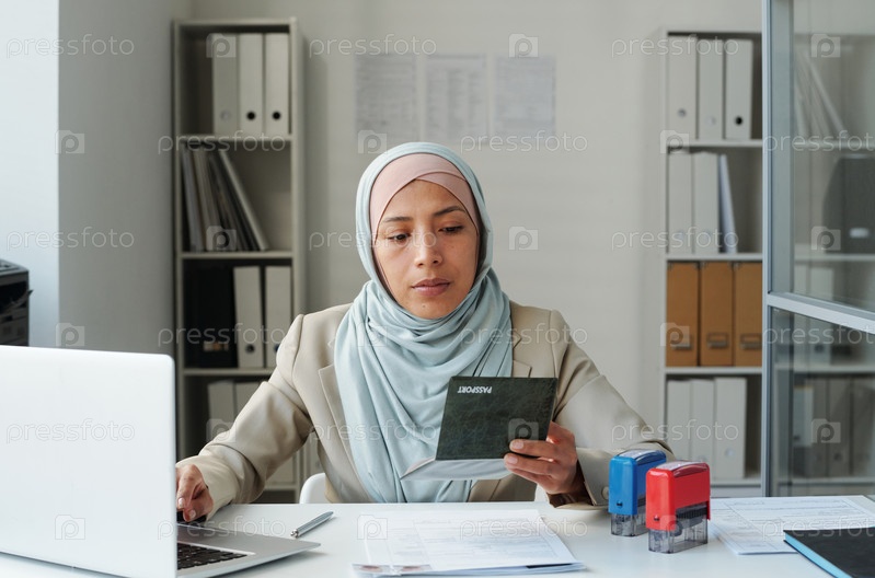 Женщина-мусульманка проверяет данные паспорта