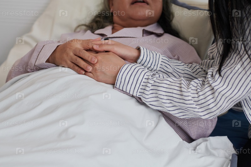 Дочь касается рук больной матери