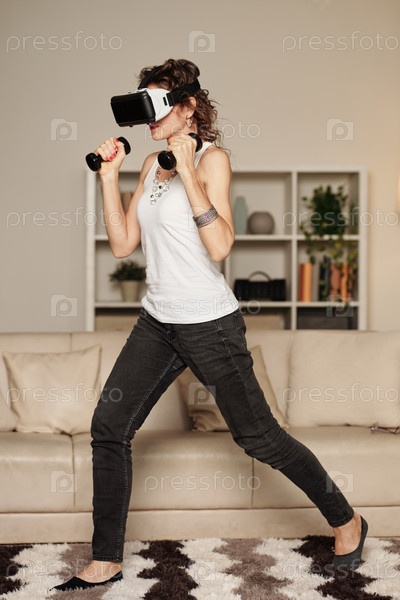 Женщина, занимающаяся с помощью VR-гарнитуры