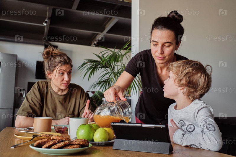 Лесбиянская пара завтракает с ребенком