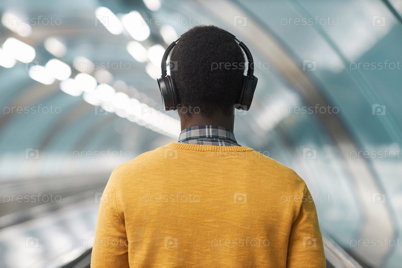 Человек в беспроводных наушниках слушает музыку