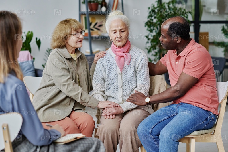 Люди, поддерживающие пожилую женщину вместе