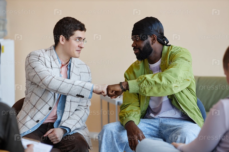 Парни приветствуют друг друга на сессии