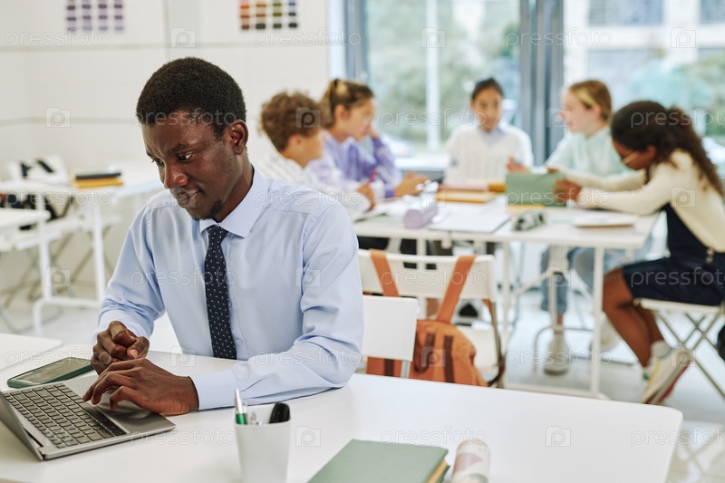 Молодой чернокожий учитель в классе